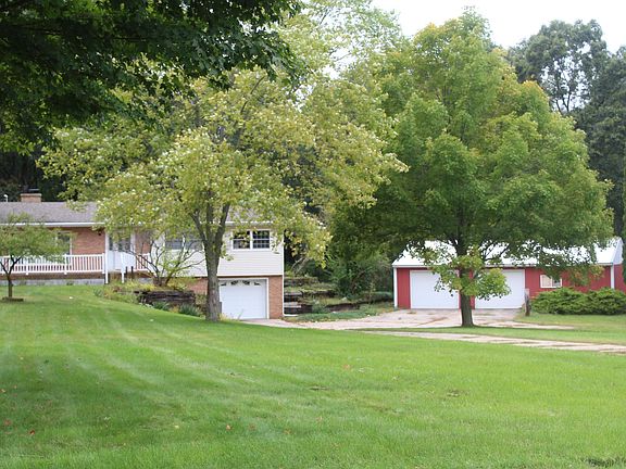 Stunning Chicago Commons Brick Front Ranch nestled into 14.3 acres of woods. Cherry Imperial Cabinetry Kitchen open to Dining Room. Formal Living Room with fireplace. Three Large Bedrooms with solid 6 panel wood closet doors. Wonderful All Season Sun Porch/Family Room with Main Floor Laundry. Delightful views of wildlife from this cozy living space. Partially finished basement with Rec Room/hobby room and additional non-conforming bedroom. Central Air, Newer Windows and Attached 1 Car Garage . Large double car detached Pole building with garage door openers. Two Additional Sheds. Finished Square Footage was measured and should be verified by Buyers Agent.