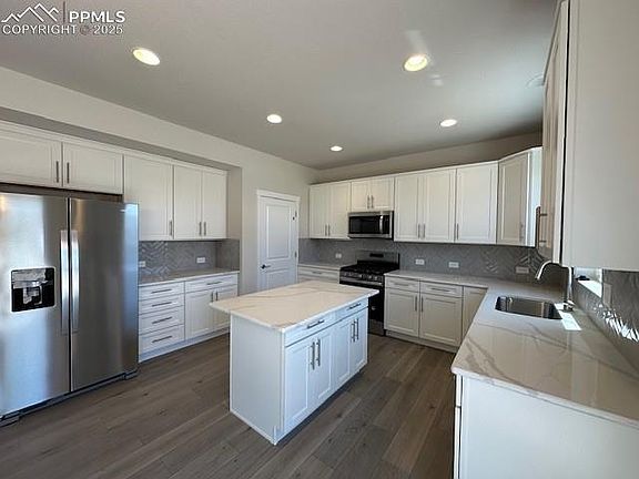 Ready now! Capstone two-story plan in Homestead at Sterling Ranch. Attractive stucco and stone exterior with front porch. 5 bedroom, 3.5 bath, main level study, 2 car garage home. Kitchen features extension option, white cabinets, sophisticated Terra Luna Quartz countertops, workspace island, pantry, and stainless steel appliances including a gas range and refrigerator. Enjoy the outdoors on the rear patio conveniently accessed through the family dining area. The upper level primary suite features 2 separate closets, large bathroom with 2 sinks, oversized linen closet and separate toilet room. The finished basement includes 1ft. taller ceilings, recreation room, 2 bedrooms and a full bath. Home comes equipped with a smart home package, radon mitigation system, and air conditioning. Seller incentives available.