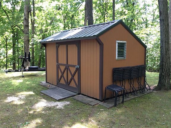 - Exterior Features: Shed, Wooded, Boat House, Dock, Lakeview, Water Frontage, Deck