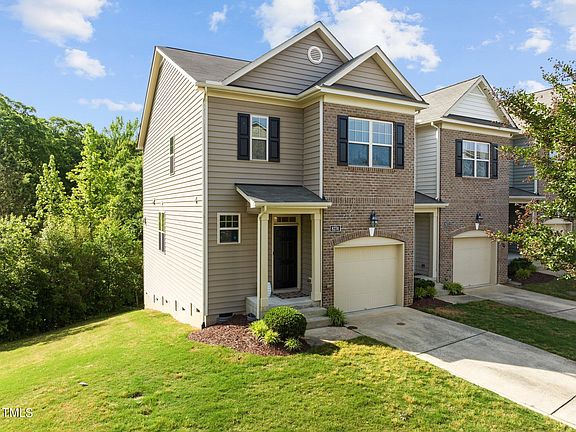 Nestled within a picturesque treehouse-like setting, this beautiful end unit townhome offers an enchanting retreat. As you step inside, you're greeted by 9-foot ceilings on both the first and second floors. The first floor boasts hardwood floors, crown molding, and abundant natural light, creating a warm and inviting ambiance. This townhome offers open concept living with a kitchen featuring stainless steel appliances (gas range), granite countertops, and a nice pantry. The living room has a gas log fireplace and opens to a back deck overlooking lush trees, creating a serene view. The primary suite is a delight, featuring a tray ceiling, walk-in closet, dual vanity, and a separate tub for luxurious relaxation. Fresh carpet guides you to two additional bedrooms, a full bathroom, and a convenient laundry room. Situated just off Glenwood Avenue, the location is unbeatable- offering quick access to Research Triangle Park, RDU Airport, Crabtree Valley Mall, and 540 making it a dream for convenience and lifestyle. (For sale sign is in the window)