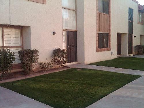 Community pool, grass, and trees very inviting... Not a short sale or an REO. Beautiful Old Town Scottsdale location. This attractive condo features tile on first floor and carpet in the bedrooms and stairs. laminate in upstairs bathroom. Nice sized bedrooms with a large master closet. It's difficult to find a condo in this area that has inside laundry with full sized washer & dryer, a good sized covered patio with a block fenced courtyard, TWO covered parking spaces right outside your back door & your own locking storage shed. Close access to 101 freeway and 202 is just down Hayden... Lots of amenities close by.