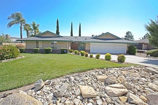 This beautiful Ranch-style home sits on 0.5 acres of land, with horse trails, breath taking views and hiking paths that lead to waterfalls! The spacious front yard, large driveway and three car garage allow for plenty of parking for guests, and room for storing all your outdoors equipment! The living room features a large fireplace, and built-in shelving. The kitchen is perfect for any food lover! Lots of cabinet space and double ovens makes cooking a breeze! Four spacious bedrooms, all with adequate closet space, and mirror doors. This home also has three bathrooms so no one is fighting for space when getting ready! The back yard has a large covered patio, lots of grass, and a beautiful pool! This home would be perfect for someone who loves to entertain family and friends, it really has it all! What more could you ask for?! This home is in the perfect location and is in beautiful condition!