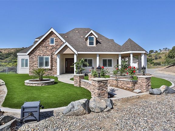 Country living at its Best on the outskirts of Corona! Welcome to 2.32 Acres in South Corona/Temescal Canyon just a short drive from the Dos Lagos and Crossroads Shopping Centers. Live in the hills with tons of privacy and room to stretch out with the most Incredible Views of the Hills filled with wild flowers in the spring that surround the property. This Estate Home is gated, fully fenced with the immediate backyard cross fenced. This Custom built French Country Estate Home includes recent upgrades and renovation: All New Paint inside/outside, New Custom Shutters, New Stainless gourmet kitchen (Viking Refrigerator and a wine Refrig included along with a Brand New Front Load Washer/Dryer) New High end ceiling fans, New whole house water flitration producing pristine water from your own well. New Large solid patio cover with LED lighting and fans. Charming Milguard dormer windows (newly replaced) provide bright, natural light in the oversized upstairs bedrooms and spa like bathroom. Recently installed high end, dog friendly artificial turf along with New Landscaping surrounds the house. The oversized 3 car garage has new epoxy floors and is surrounded by high end Cabinetry. This Estate is serviced by a high capacity, 18 GPM well with endless water supply and a large commercial grade septic system. Landscape lighting and security lights have all been updated. Sprinkler systems updated including new timers. T-Mobile high speed internet service is available and reliable. Main floor Master Suite with a large 2-person jacuzzi tub, stone walk in shower and built in vanities. An additional office downstairs that could be used as a playroom/game room or 4th bedroom. Large Laundry/ craft room. 1400 sq ft. RV garage with 2 large doors, 8+ cars shop that is freshly painted with high intensity lightning, plenty of room to bring in car lifts and double your car capacity. This fully finished shop could be easlily converted into an ADU . 400 Amp service to the house, 200 Amp to the RV garage. To many amenities to list, You need to expierence the ambiance this Estate home has to offer! NO HOA, LOW LOW TAXES SPECIAL ASSESMENTS ONLY $614 A YEAR!! Most furniture available out of Escrow....