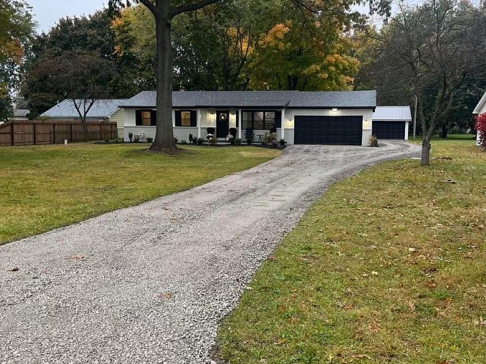 Wow! This will not last! A completely update ranch on nearly 1 acre with a 2.5 attached garage and a 2nd 2.5 car detached garage. All new paint inside and out, all new flooring, all doors, lighting, windows, new 14x16 deck, new deep well, new roofs on home and detached garage. Updated gas forced air furnace. But don’t stop there, all new kitchen and bathrooms including upscale cabinetry including soft close doors/drawer in kitchen that offer pull out shelves and an amazing pantry cabinets. You will fall in love with the new full bathroom. Everything is new including the interior doors and new handles. All of the closes offer stable style doors including the Primary with 2 closets that offer built in shelving. Watch the sunrise on the covered front porch or the sunset on the rear deck. There is extensive exterior lighting. This lovely home will not last! Do not delay your viewing!!