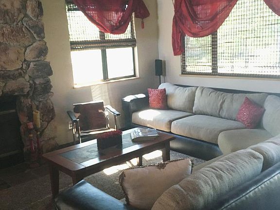 Wow! Come see this decorator inspired remodeled cabin at the lake. Enjoy an open floor plan with vaulted wood beam ceilings in the newly updated kitchen/dining area with granite counter tops and porcelain tile floors. This area opens out onto a gorgeous Natural Stone look stamped concrete tile deck with a partial over hang w/ ceiling fan. Enjoy unobstructed lake views from this low maintenance deck with trex uprights and stainless steel cable. Spa influences in all three newly remodeled bathrooms with walk in showers with slate tile and river rock inserts as well as oil rubbed broze bath fixtures & granite counter tops w/ river rock insets. Beautiful master bath with all of the above plus a custom Teak counter top w/ twisted legs, hammered trough sinks w/ mother of pearl drains & a Ultraglas entry door. New addition of a game room with it's own trex deck & oscillating fan. Newer exterior paint, roof and carpet. And the garage fits a boat with a tower!
