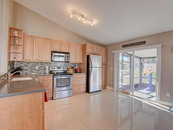 What a sweet home! Seller offering a Home Warranty! NewCopper piping throughout, impact windows, updated bathrooms & kitchen, wood cabinets, corian counters, SS appliances, large 24''cream colored tile in main living area & into 2 bedrooms (looks like marble) master has wood-like vinyl, no carpet at all! Volume ceilings adds drama; open floor plan adds to the flow of the home. Step outside to the screened patio overlooking a park-like grassey view onto a tranquil lake w/ south/west exposure where you can experience beautiful sunsets. Backyard fenced in. This home sits on a corner lot giving plenty of room to roam around the property. Throughout the community are walking trails as you meandor through the park-like settings. Community pool, tennis, basketball court plus more for all to enjo