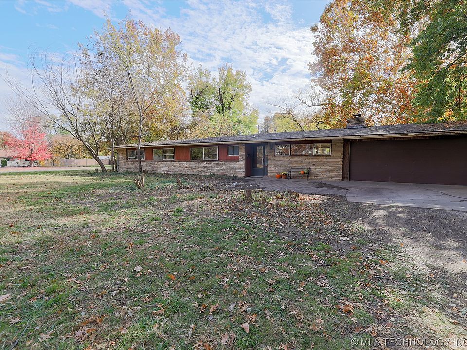 This Mid-Century Modern Home is the perfect fit for anyone looking for a ranch style home to make their own. Sitting on a corner lot with 3/4 acres, there are options galore for a modern homesteading lifestyle while living in the heart of Tulsa enjoying all of its conveniences. Huge windows overlook the property and a 350Sf workshop is attached to the house on the other side of the garage, perfect for storing all your tools and for work projects. If you are a fixer upper type, but want a house that is completely livable and already partially renovated, then this is the home for you. The kitchen features a beautiful waterfall, granite counter tops with a huge dining room attached. There are vaulted ceilings throughout, which gives this home charm with a great flow. Air conditioner, furnace, and water heater have recently been replaced. Quick and easy access to both I44 and the Broken Arrow Expressway.