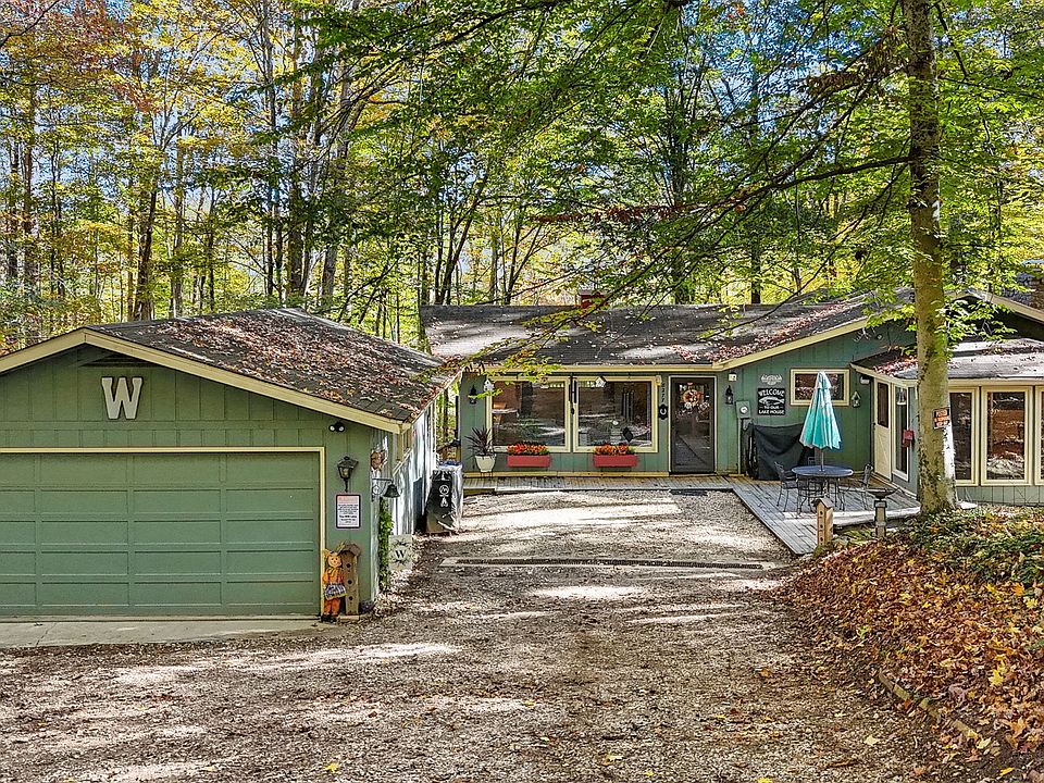 Discover this beautiful Lake LaSalle home nestled in the natural beauty of Brown County with a guest house-a perfect blend of relaxation, recreation, and rustic charm. This inviting 2-bedroom, 2-bath retreat sits on over 1.5 wooded acres teeming with wildlife and offers stunning lake views and peaceful surroundings. The spacious living room is filled with natural light from large windows, creating a warm and welcoming atmosphere. Adjacent is a cozy family room featuring a striking stone wood-burning fireplace-perfect for chilly evenings and gatherings with family and friends. The finished basement expands your living space, complete with a bonus room, exercise area, second bedroom, and full bathroom-ideal for guests or extended family. A bright sunroom overlooks the serene wooded lot, while the large deck provides an ideal spot for entertaining or simply taking in the tranquil lake views. A highlight of this property is the charming guest house, conveniently connected by the deck. It includes its own living area, kitchen, full bath, and washer/dryer-perfect for visitors, extra privacy, or potential rental income. Take a scenic walk down to your private dock and enjoy fishing, swimming, or a peaceful boat ride on Lake LaSalle, a 50-acre lake that allows boats up to 40 horsepower. This lakefront property truly captures the essence of Brown County living-where comfort, nature, and outdoor adventure come together in perfect harmony.