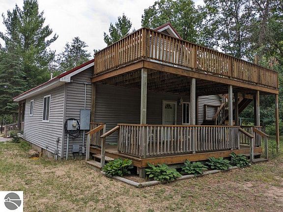 Very well maintained home on 1.26 acres. The upper level which is a large bedroom with walk-in closet and full bath is not included in the total square footage as it is entered from an outside entrance, the upper level is an additional 336 sq. ft. The lower main floor level is 2 bed and 1 bath and is 1148 sq. ft. Property is located very close to Huron National Forest, several inland lakes, AuSable River and ORV & Snowmobile trails. The home was 100% remodeled in 1999 both inside and out. New roof in 2019, new heating system in 2014 and central air added in 2018. This has a lot to offer, must see.