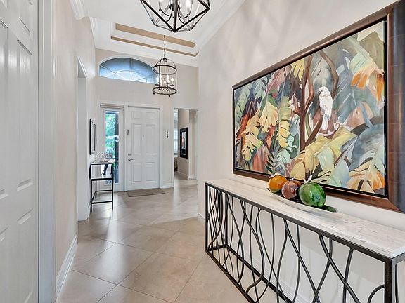 This beautifully updated, move-in ready home offers a wonderful water view that creates a serene backdrop to daily life. Elegance abounds with 24-inch Spanish porcelain tile floors laid on a diagonal throughout, adding a distinctive touch to every room. Highlights include: 2 spacious bedrooms plus a versatile den, 2.5 luxurious bathrooms, stainless steel appliances, and a North-facing backyard that provides abundant natural light. The 2023 air conditioning system and hurricane-impact glass offer comfort and security, while custom closet systems enhance organization. The waterview and custom features make this home a standout. Schedule your tour today!