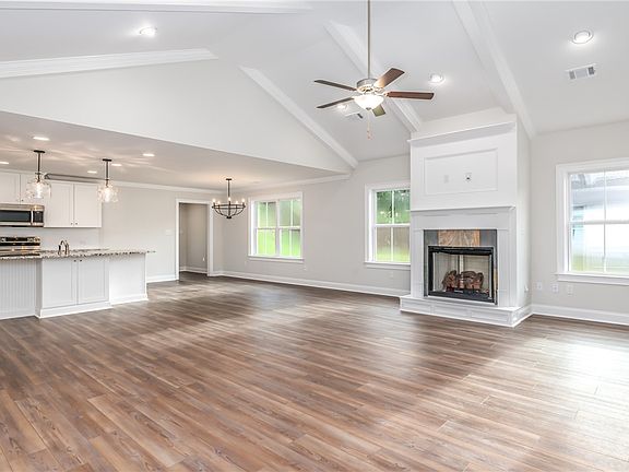 Constant appeal and elegant definitions are found in the “Hampton” for those calling for luxury and comfort. Vaulted beamed ceiling and dramatic custom columns in huge great room suggests space, and excellence in finishes. Custom fireplace allows an even greater level of amenities while offering sheer enjoyment of an evening fire on those cooler nights. Huge kitchen’s attention to custom cabinetry, upgraded stainless steel appliances, and granite counter tops, are sure to enhance cooking and eating experiences. Retire to the master suite that exudes privacy and use of space and take advantage of the well thought out master bath with every amenity for speedy starts for the day. From something as simple as a laundry room that does not abut any bedroom or living area, this plan provides plenty of comfort.