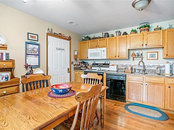 If it???s convenience you are after, this condo is hard to beat! Here you have every convenience from shopping and dining to easy access to major routes in an end unit that enjoys the privacy of a tree line and natural earth border. Begin each new day this summer watching the sunrise over the embankment from your gated patio and look forward to fun things while the association tends to your grass and landscape. There are no more stairs to climb. All features are on one level, and you will love the flowing, connected interior. Light enters an expansive window and fills the open concept living space from floor to vaulted ceiling. The user-friendly kitchen is beautifully appointed with sleek oak cabinetry, topped in dark granite. A chic streamlined ensuite combines a walk-in closet and full bath to pamper you. You???ll have plenty of room for guests to park in the expanded driveway and plenty of places to store things on the built-in garage shelving. Easy care Naturestone garage floor.