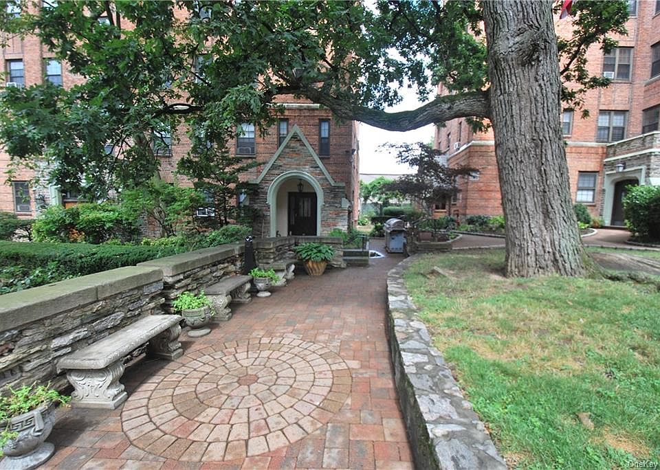 Fabulous 2 bedroom at desirable Bronxville Ridge!! This first floor PET FRIENDLY residence with fireplace features great courtyard exposure, spacious floor plan with dining room, ample closets, amazing kitchen and baths, stainless steel appliances, granite counter tops, Hardwood floors and walk to train!!! Easy first floor living with homelike feel set back from the street in an old world charm treelined setting!! A MUST SEE-move right in!! Lovely landscaped complex Park like setting with bench sitting areas and BBQ area... Conveniently located with RR close to all major highways, dining and shopping. This is your home without the hassle of outside maintenance!!