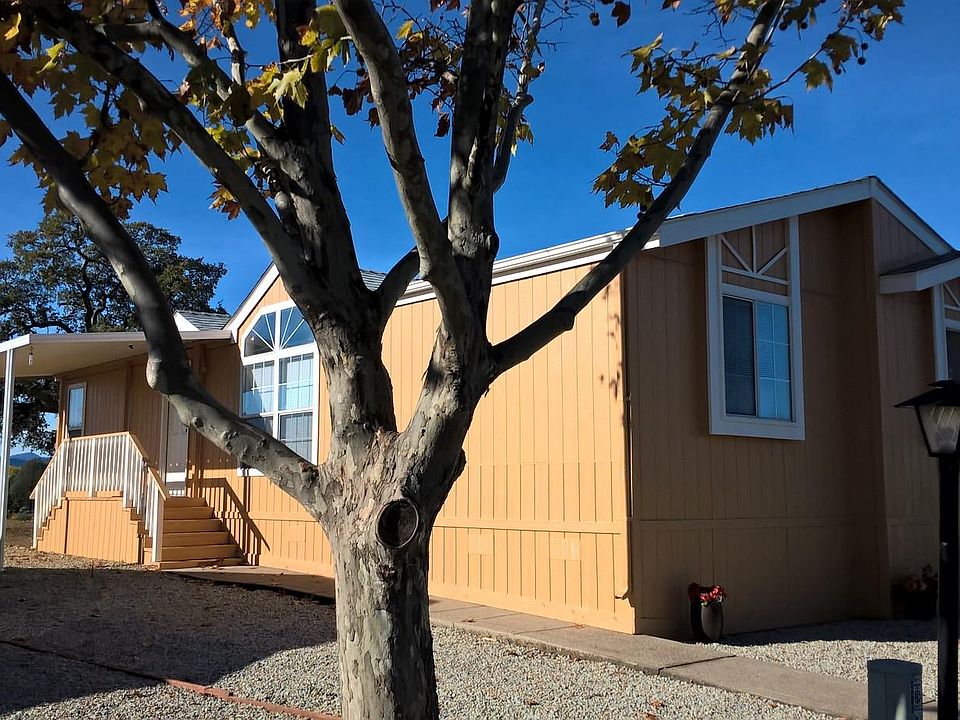 Talk about a view! This freshly redone 3 br/ 2ba home has that. New paint inside and out, siding, carpet, flooring, porch, and Kitchen island. The vaulted ceilings and open split floor plan provides for a spacious feel. Enjoy the sunsets from your backyard and all the amenities that Los Robles Estates has to offer. Sparkling pool, exercise room, billiard room and more. An active 55+community