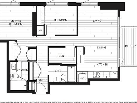$30k off 2 bedroom + den homes & $15k value upgrade package! The 21st floor 2D corner home is 850 SF with N/W exposure + a spacious open concept kitchen/dining/living area at the heart of the home. Sliding doors open from the living space onto the 72 SF balcony with breathtaking water, mountain and city views. The master bedroom features a walk-through closet area, that leads to the ensuite bathroom. The 2D has lots of storage located off the entry and the good sized den is perfect for a home office set up. Engineered hardwood flooring throughout, top of the line Miele and Fulgor Milano appliances. Approx. $0.50/SF maintenance fee includes heating & cooling. Storage & parking included(every stall EV ready). Presentation Centre at 1035 Seymour Street. Open daily 12-5pm (closed Fridays).