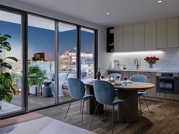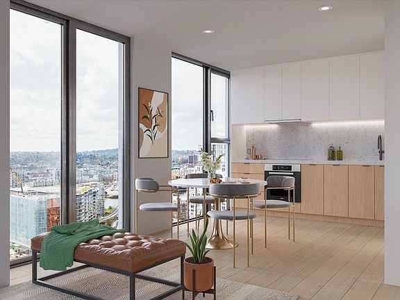 $50k off 2 bedroom + den homes! The 2C home on the 27th floor is a 868 SF corner home, S/W exposure with a spacious open concept kitchen/dining/living area at the heart of the home. Sliding doors open from the living space onto the 119 SF balcony with breathtaking views. The master bedroom features a walk-through closet area, that leads to the ensuite bathroom. The 2C plan has a good sized den perfect for a home office set up. Engineered hardwood flooring throughout, top of the line Miele and Fulgor Milano appliances. Approx. $0.50/SF maintenance fee includes heating & cooling. Storage & parking included (every has EV rough in). Presentation Centre at 1035 Seymour Street. Open daily 12-5pm by appointment (closed Fridays).