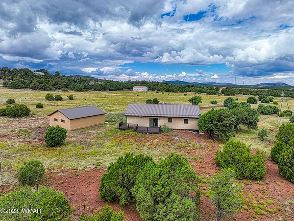 A stunning 3-bedroom 2 bathroom home in Vernon on 5.35 acres (approx. 233,046 sf). Large living area open to kitchen and dining space. The kitchen features granite countertops, an abundance of cabinet space and stainless-steel appliances. The dining area has access to a back deck. Large master suite with dual vanities, shower, and access to laundry room. Downstairs you will find the basement/ bonus room. This space could be used for an additional living area, a bedroom, or whatever you can dream of. Enjoy the four seasons from the front or back deck. Room for your toys in the detached 2 car garage. Come live the county life, just minutes from Show Low.