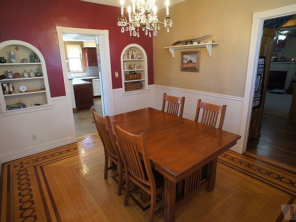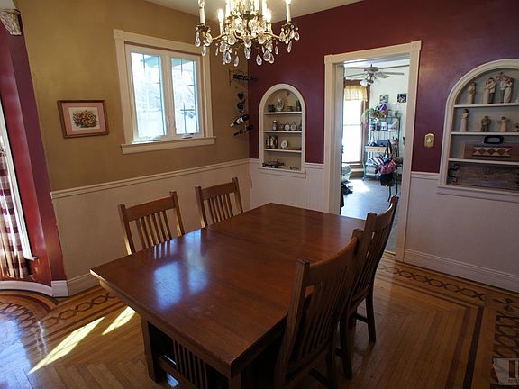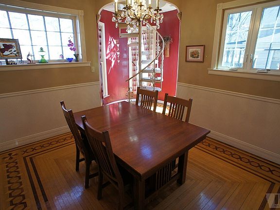 This 4-5 BR Victorian home is a one of a kind, full or charm. A turret off the dining room has a spiral staircase that opens up to a 2nd floor family room or 5th bedroom. Beautiful hardwood floors in dining room with wood inlay borders and built in arched shelving. Remodeled maple kitchen with cranberry stain in '12 with breakfast bar and dine-in kitchen area. Half bath (toilet new '18) and main floor laundry off kitchen. Large living room with new Heat-N-Glo gas log insert w/ remote. Front picture window '17 and all second story windows new in '16! Lily pond with pump and filter that all stay was completely rebuilt by a professional pond company. Master bedroom, bath and walk-in closet on third floor. Master bath has new Bath Fitter's shower! Main furnace and A/C new in 17 along with lots of new duct work to help system work more efficient. New roof on house in '11 and garage '14. Both central vacs stay. Front steps were rebuilt in 2018.