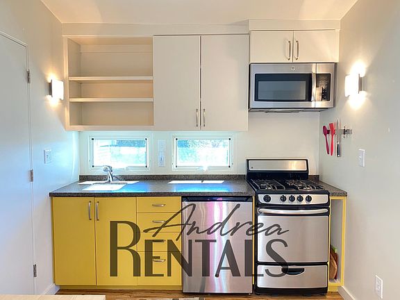 Architect-designed, fully detached studio with sunny deck, yard, and bay views! Virtual tour today. Not your typical studio rental, by any means! This serene and modern open-floor plan studio has a European modern design, vaulted ceilings, tons of storage, a private deck area, and is just 1.5 Miles to town and campus. The entrance to the studio is down a long driveway and through a sunny yellow craftsman front door. As you enter there are two built in closets on either side, creating a small foyer. As you step into the open floor plan studio, the modern kitchen and bath are on the left, and the right wall is made entirely of custom closets with sliding doors. The ceiling is vaulted, with a center beam and 2 overhead lights, plus 2 skylights. The floors are hardwood planks. At the far end of the unit, a small desk is tucked under a casement window that opens out to views of the Bay. A queen size bed is on the left. The kitchen is fully stocked for all your cooking needs and has a gas stove, mini fridge and freezer, microwave, granite countertop, and yellow sleek cabinetry. The efficient, stylish bathroom is just off the kitchen, with tankless water heater, modern dual flush toilet and built-in shower. To the left of the front door is a gate that leads to an enclosed, private side garden and redwood deck, with sweeping bay views plus a gorgeous shady oak tree. Access to the shared laundry is through the garden. - Great Berkeley hills location - halfway between Tilden and Marin Circle, and a straight shot down Euclid to the campus. - Shared laundry on site - No pets allowed - All utilities included - Fully furnished (partially furnished can be discussed) Available Now - Virtual Tour Today Please email to take a look, and tell me a little about yourself! Stephanie DeMott BRE: #02007384 AndreaRentals: A Rental Concierge for Bay Area Owners and Renters All utilities included. No pets. 1 year lease preferred.