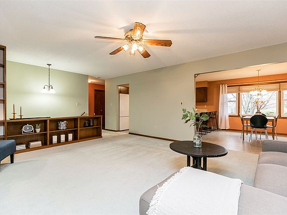Mature subdivision tucked away from the hustle yet so close to what you need. This 4 bedroom, 2 bath ranch, sets on a little over half an acre, lovingly cared for and now awaits the updates for you to call it home. Neutral carpet, Large LR/din/kit plus a 3 season porch offer gathering space. Downstairs is bar and play area, an open sunlit room for hobbies, and a canning kitchen!!! A full bath & walkout door to mature trees and landscaped back yard complete this layout. Transfer Septic work is completed.