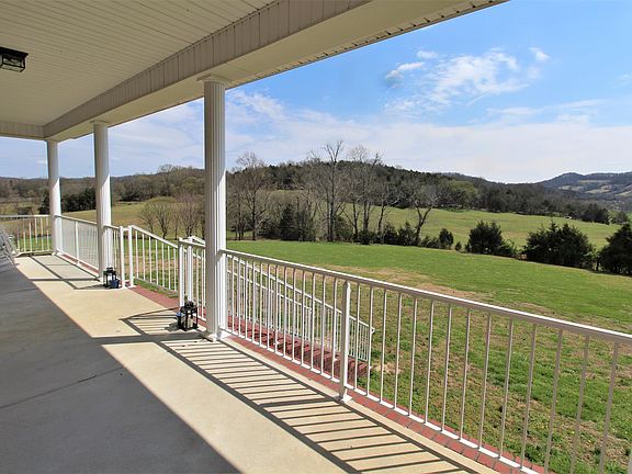 One level living w/ 9.96 acres offering incredible hilltop views! 3 bedrooms on main level, each w/ own private full bath & walk-in closet. Expansion space in attic & basement, both framed w/ power. 4 bedroom septic in place! Attached garage w/ workshop & storm shelter.