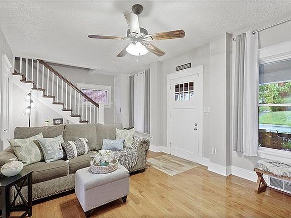 Welcome home! Beautiful covered front porch leads into family room with built ins, hardwoods, fireplace and large windows. Spacious dining room with gorgeous chandelier. Updated kitchen with white cabinetry, countertops with waterfall edge and hardwoods. Finished lower level game room with bar area that leads to backyard with outdoor entertaining space. Second floor with 2 large bedrooms and newer carpet. Updated bath on second floor. Private water closet on LL. Lots of storage, lower level laundry and extra room great for workshop. 2 off street parking spaces in the back. Manicured landscaping.