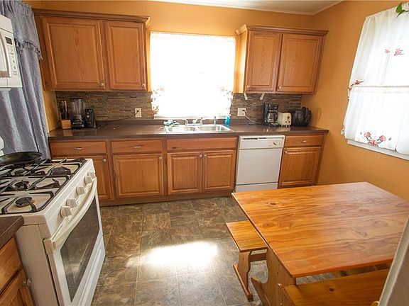 This 3 bedroom home has been meticulously updated by the current owner. The enclosed front porch has sliding doors opening it to the main living area. This creates a spacious entry way and additional living space. The large living room has new laminate flooring and opens to the formal dining room. The kitchen has been completely updated and has room for an eating area. The 2nd floor has 3 bedrooms and a large, updated bathroom with corner tub! Full walk up attic for storage. Basement has laundry room, workshop/utility room and 2 additional rooms. Every window in the house has been replaced with thermal windows. Fenced in back yard has storage shed. Blacktop driveway with added parking area.