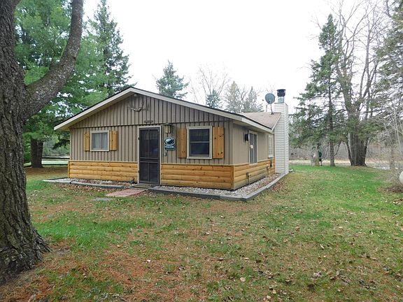 RIVERFRONT LODGE- 3 bedroom, 1 bath cabin or year around home on the famous Au Sable River, boasting 120 frontage right out your front door. Desirable location, and great views out your front window. Stone fireplace, knotty pine interior and open layout. Covered patio and fire pit on the river's edge. D-405 $ 149,900