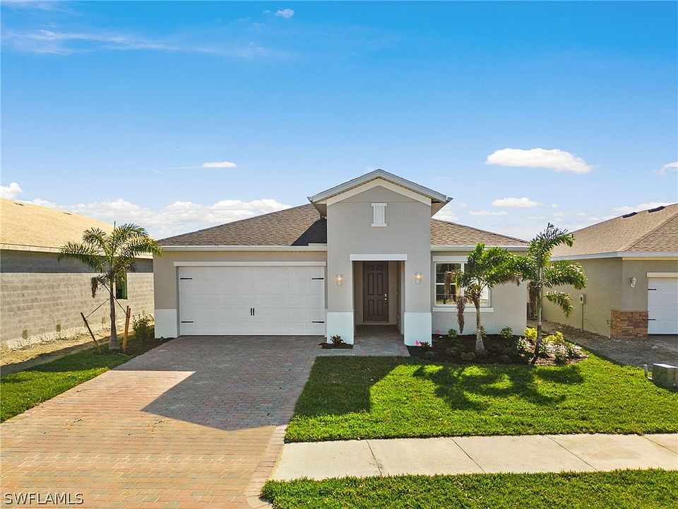 Brand new construction to be complete in February and ready for you! This is Cape Coral's newest gated community! This is the Charlotte floor plan, which is a beautiful single-story home with 3 bedrooms and 2 and a half Bathrooms. Beautifully upgraded with 42-inch cabinets, Granite countertops throughout with a beautiful backsplash, Stainless Steel appliances, beautiful plank tile flooring throughout the home, tiled showers, screened lanai, 8ft interior and exterior doors with upgraded Base and Casings. This beauty has plenty of room to add your custom pool. Stonewater Community is located in NW Cape Coral with easy access to Shopping and Restaurants. This Gated community features full amenities which include a community pool, Fitness center, and a tot lot for the little ones to play, with tennis and pickleball courts. Builder is currently offering the buyer up to $13,000 Closing Cost Credit,$8,000 if paying cash. This is subject to change and certain terms may apply. Pictures are of a completed similar model home colors, finishes and upgrades will vary.