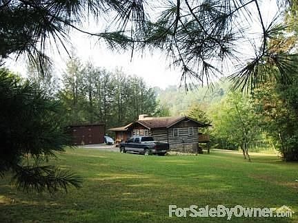 Log Cabin in Smokey Mountains on 1.1 acres with mountain stream and beautiful mountain views and relaxing porch overlooking community pond with great fishing. This cozy cabin is nestled in a beautiful rural, agricultural, valley with easy access year round, paved road to property. Short dirve to Smokey Mountains National Park, Maggie Valley, Waynesville, Lake Junaluska Family room with exposed log beams and walls and stone fireplace, dining area; two separate bedrooms. Kitchen with electric appliances. Bathroom with 4 foot shower. Cabin is being sold as is (furnished) including A/C. Many recent upgrades. A seperate garage/utility building is 16' x 16'. Lawn maintenance equipment to include a 42" Craftsman riding mower included in sale. In addition to mountain stream, property has lots of very large trees and lots of flat grassy area. No restrictions, volunteer property owners' annual fee of $125 for road maintenance. There is plenty of room to park a Motor Home or Travel Trailer. All you have to bring is your groceries or take a short drive to one of many local restaurants. For additional pictures call or e-mail.Additional property info: http://www.forsalebyowner.com/listing/2-bed-Log-Cabin-Home-for-sale-by-owner-828-Hidden-Valley-Road/22197408?provider_id=28079