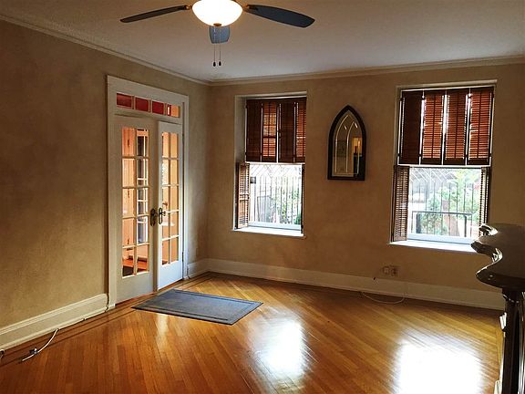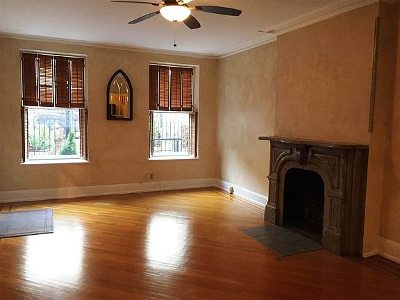 Charming Garden level Brownstone unit with private backyard, large deck and landscaped garden, front patio as well. 1000 sq ft 1 bedroom with formal dining room and large living room with marble fireplace, hook up for gas fireplace insert, Can be used as a two bedroom but ideally used as a 1 BR. Hardwood floors, marble bath, stainless appliances, Washer dryer in unit, small extra room for office storage, good closet space as well. Great unit for empty nesters.