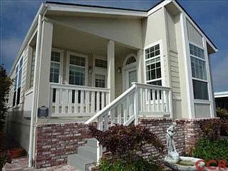 Wow...Spectacular ocean and green hill views, is what you will find here! This 2006 modular home spared no expense with vaulted ceilings, tall dual pane windows and plantation shutters, large gas fireplace, all white kitchen with roomy cabinets, and an extra large laundry room with even more cabinets. Office/Den bonus room with glass door entrance adds to the spacious two bedroom open floor plan. You will not be disappointed with the quality amenities this designer home offers. Also, please enjoy golf, tennis, swimming, spa soaking, social activities and planned travel as a resident of this incredible Senior Park on the central coast. It just doesn't get any better!