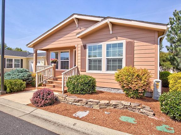 Beautiful, well maintained manufactured home in Westlake Village, the premier 55+ manufactured home park in the Grants Pass area. Not the typical manufactured home. You can't tell it is a manufactured home by looking at it. This is a 1458 Sq Ft, doublewide manufactured home with 2 bedrooms, 2 baths plus a den/office, built in 2014. Easily maintained landscaping, and a covered patio in back yard. The home has vaulted ceilings and a large single garage. There is a walk-in tub in the laundry room. Sellers will remove it or leave it as per your choice. Inclusions: Westlake village has a lake and recreation center. The home comes with a gas range/oven, refrigerator, dishwasher, and microwave. . Monthly rent will be $625 with additional fee for water, sewer, trash, of approximately $40,