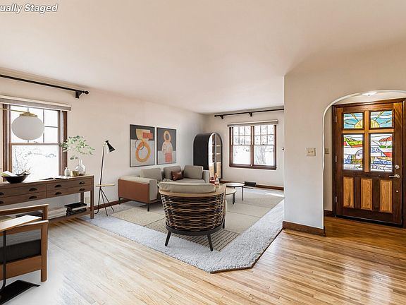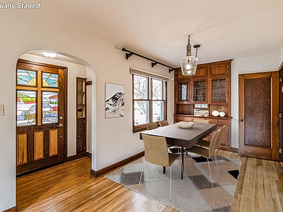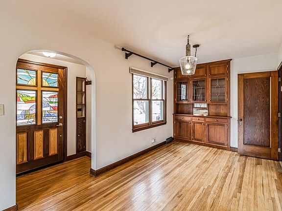 Home is being electronically staged...new pictures to come soon. Character and charm abound in this beautiful, well-preserved 1938 three-bedroom, three-bath story-and-a-half cottage-style home. It is nestled in the Heart of Story City, in a wonderful neighborhood on nearly 1/3 acre, just blocks from the Elementary and High School, the Downtown, the Library, the Story City Carousel and Park, the River Bend Golf Course, and more. Quality is found throughout this home, with solid doors, hardwood oak floors, newer wood windows, and so much more. The main floor includes a large, workable kitchen with casual dining, spacious cherry cabinetry, and a unique gas-heating stove. All appliances are included. You'll enjoy the formal dining room with a built-in cherry buffet, a pass-through window into the kitchen, and a large living room area. There is a nice front foyer with a large thick wooden front door with beautiful stained glass. The larger main-floor bedroom has wonderful cherry cabinetry built into the wall, and it is a very spacious room with hardwood floors. The full bath has tile flooring and updated fixtures, and the second bedroom on the main floor has a built-in desk. Windows throughout the home fill it with lots of natural light and energy.