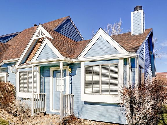This adorable 2-bedroom 1-bath townhome has great curb appeal with a pretty blue Victorian-style exterior and cedar-shake accents! The living room and dining room welcome you into the home with vaulted ceilings and a warm fireplace. A pass-through to the kitchen opens up the space and makes for easy entertaining. The master bedroom includes a walk-in closet and private entry to the main full bathroom. HOA makes for easy maintenance, and the small private back yard space has mountain views. This one won't last long!