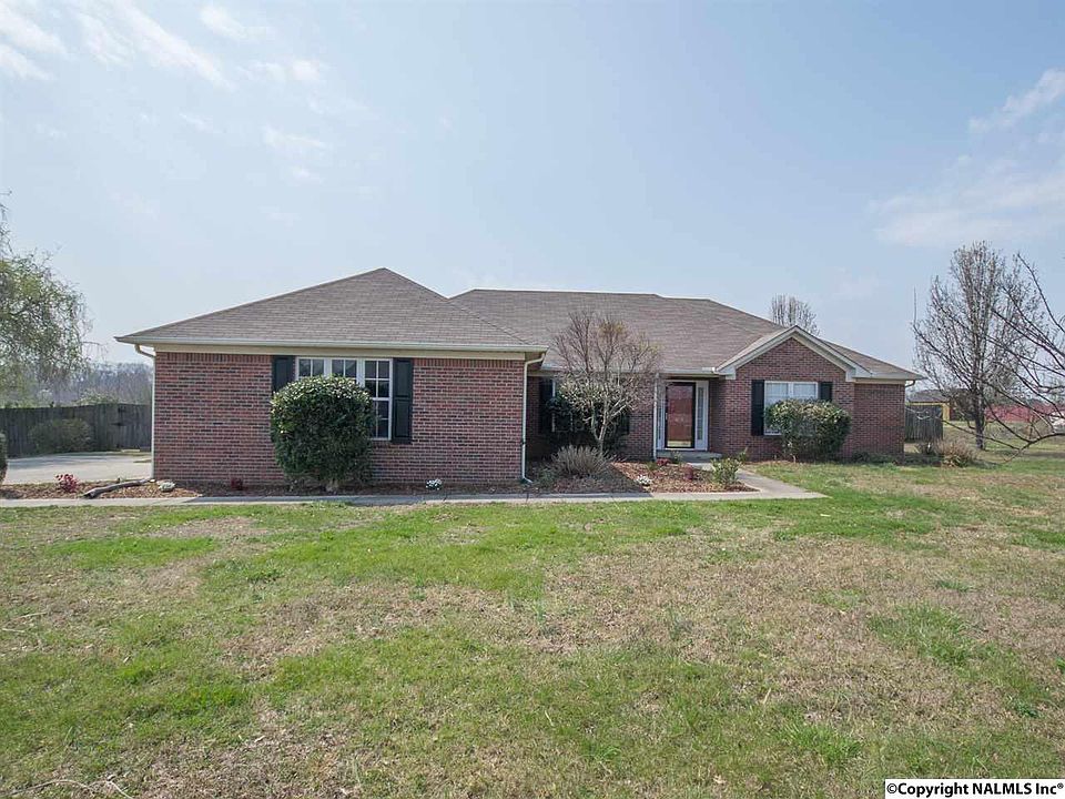 Four bedroom home with huge yard, this full brick single level home is move in ready. Large open foyer welcomes you into the living room with hardwood floors, gas fireplace and trey ceilings, formal dining room with french doors and chair rail. The bright kitchen includes breakfast bar, black appliances, and breakfast nook. Isolated master suite is spacious with trey ceiling, carpet and ensuite with jetted tub and sep shower with linen closet and walk in closet. 3 other bedrooms each with walk in closets share a hallway bath with double vanity. Out back the private yard has a barn with dog house, storage, and sunroom. Great value and location, call today to schedule your showing!
