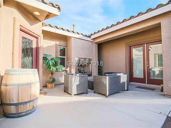 Incredible home featuring a courtyard w/gas fireplace, attached casita w/bath. Great room concept w/upgraded flooring, espresso cabinets, kitchen w/granite, large island & stainless appliances. Slider to backyard perfect for entertaining. Covered patio w/built in BBQ, amazing pool/spa w/sheer descent waterfalls & fire pots w/color changing LED lights, splash deck w/bubblers & lights. Landscape lighting is also LED. Backs to trail w/strip view!