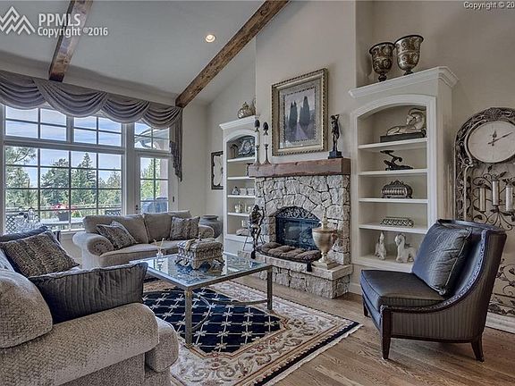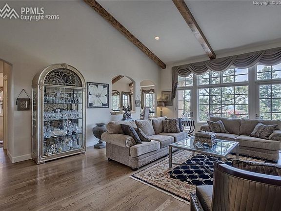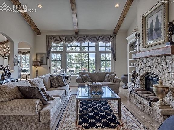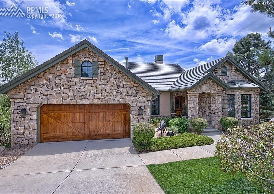 Perched high above the city of Colorado Springs in the shadows of Cheyenne Mountain rests this exquisite stone rancher in the prestigious gated Broadmoor Resort community. Private cul-de-sac lot with fabulous city and mountain views. Make yourself at home in this elegant, open floor plan which includes 5 bedrooms, 5 bathrooms (4 ensuite), and 4,210 sq ft. of living space. Upgraded details include heavy solid wood doors, custom window treatments, double crown moulding or beams throughout and vaulted or tray ceilings in all bedrooms and bathrooms. The Gourmet Kitchen features custom cabinets with slab granite counters, a breakfast bar, planning desk large dining nook, stainless steel appliances and gas stove. There is a separate Dining Room and Living Room with built-in shelves and a gas log fireplace for more formal gatherings. The main level Master Suite has a luxurious attached 5-piece bath. The walk-out finished basement includes a large Family Room with Dining Area & Wet Bar for additional entertaining. Enjoy outdoor activities in the professionally landscaped yard with mature trees and shrubs. There is an upper and lower deck and a spacious patio to relax and appreciate the incredible Colorado beauty that surrounds this amazing home.