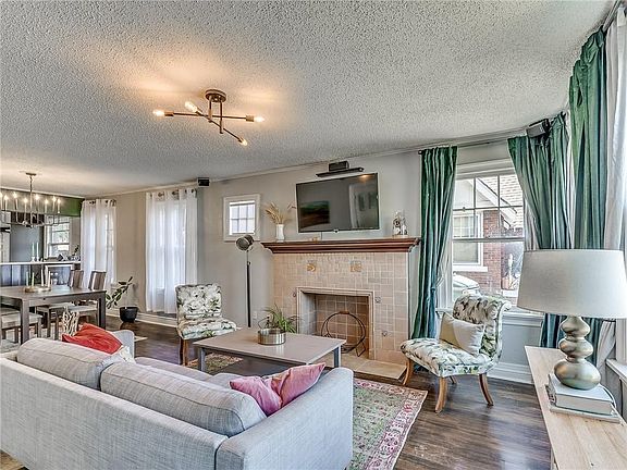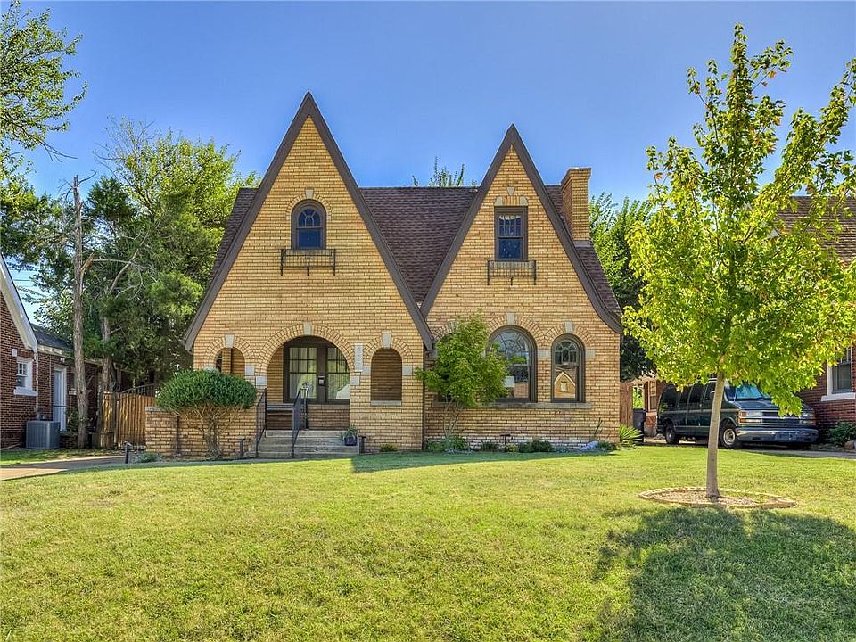 Charming Tudor in highly desired Lincoln Terrace neighborhood. Just minutes from OU Med/VA Hospital, The Capitol, Downtown, and the highway for ease of commute! This home welcomes you with cozy covered front porch, natural light, original hardwood floors throughout, and a show stopping Frankoma style fireplace. The beautifully remodeled kitchen has butcher block and quartz countertops, stainless steel appliances, a coffee bar, Alexa voice controlled under cabinet lighting and cabinet lighting inside of the glass cased bar cabinet. The pantry area off of the kitchen leads out to the back, and there is a storage basement with W/D Hookups. Sizable bedrooms with the room off the living room being perfect for an office or bedroom. The Backyard is private and ready for fall! The one car garage has room off it for storage/workshop! New HVAC, Roof is only 3 years old, New electric panel, windows reglazed, and Alexa home with stay with house. Don't miss the chance to make this one yours!