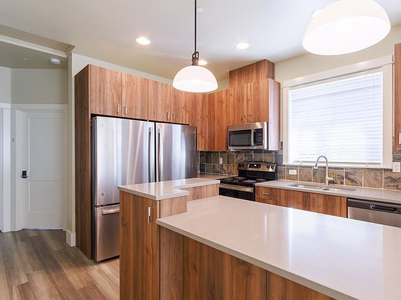 We designed this house with you in mind, starting with keyless locks on the front door and on every bedroom. You won't have to fumble with keys, and you'll never worry about being locked out. The expansive great room includes a 65" TV already mounted for you. The luxury kitchen features 2 fridges and a large island, and even soft-close cabinet drawers. And did we mention that every bedroom is a master suite? Each room in the house has an independent heating system, and every bedroom also has ethernet and cable wiring. The attached garage also has a keypad opener. Your neighbors in the downstairs apartment have an entrance to the side of the house, out of the way. You'll have your own secure package delivery box, so your online orders will always be safe from porch pirates. We didn't get photos after construction was complete, so the photos are of a similar house we recently built in Corvallis. The floor plans shown are the actual floor plans. This home is PET-FRIENDLY! For each pet, there is a $20 monthly fee and a one-time $225 refundable deposit. We are a small company, and we work hard to give personalized service! Sarah will be taking care of all your needs from your first showing through your final move-out. Call or text us now to schedule your live or virtual showing! 7/4/25 to 6/29/26; Residents responsible for all utilities; Pets allowed with fee and deposit