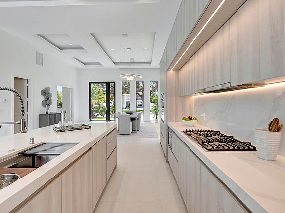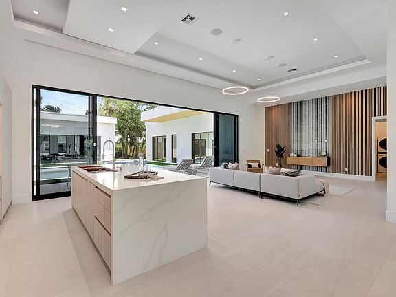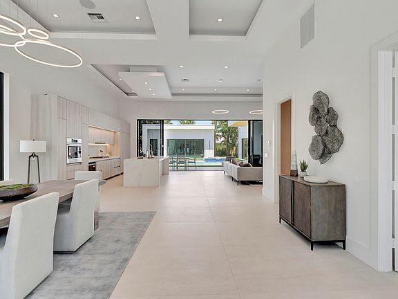 Welcome to East Boca, where luxury living meets contemporary design in this stunning, brand-new, custom-built 5BD/5.5BTH home. Boasting a total living space of 3,200 sq ft under air & 4,239 sq ft in total, this designer's masterpiece offers ample room for comfortable & elegant living.Step inside and experience the epitome of modern living. Stunning 30ft wide picturesque sliders overlook the oversized, resort-style, heated saltwater pool & spa, allowing natural light to flood the interior, creating a bright & inviting atmosphere. Entertainment is taken to another level with Wi-Fi ceiling speakers in the living area & master bedroom. The inclusion of natural gas ensures convenience & versatility for cooking & heating needs.