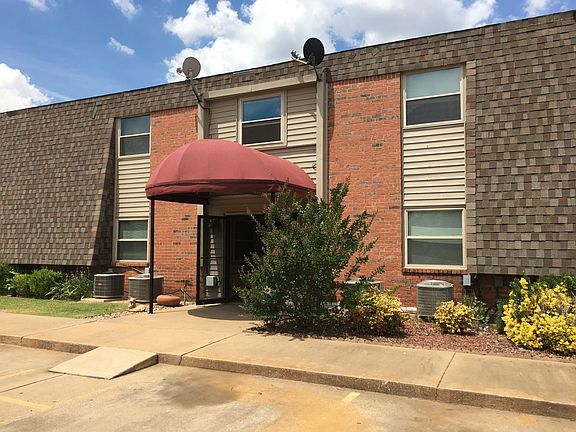 Newly renovated and perfect move-in condition. This is a spacious upstairs two bedroom, two full bath unit with all appliances including; dishwasher, electric stove, and refrigerator. The unit has just been professionally painted from ceiling to floor including; ceilings, walls, closets, baseboards and kitchen cabinetry inside and out. New baseboards were installed over brand new wide laminate plank flooring throughout the apartment. New adjustable LED light fixtures are though out the apartment and above the vanities in both bathrooms. New 10 yr. smoke detectors are in hall and bedrooms. The apartment has ample storage; 3 hall closets, including a built-in hamper, linen closets in both baths, 2 closets in master bedroom and additional storage under the bar area. The master bedroom also has a built-in vanity/media area and two wardrobes with built-in shelves. The secondary bedroom has a large double closet with 2 racks and built-in shelving. All windows open and are double paned/tilt-in windows for easy cleaning and have new blinds and curtains installed. Laundry facilities are provided on ground floor. The parking is paved and has additional parking for guests. Grilling is allowed in the patio area in a fenced yard. You have a covered porch area and a view of Festival of the Lights. This is a quiet neighborhood and is centrally located in Chickasha, with shopping and a city park within walking distance. Owner pays for trash, sewer, and water. Tenant pays electric, no gas is needed. All adults in unit-will be required to pass employment verification, background checks, and credit checks. A credit score of 600 is required for all. Rent 795/deposit 800. 1 yr lease, 2 parking spaces total. Adults are 18 and up. All adults must qualify individually. No Pets/ No Smoking.