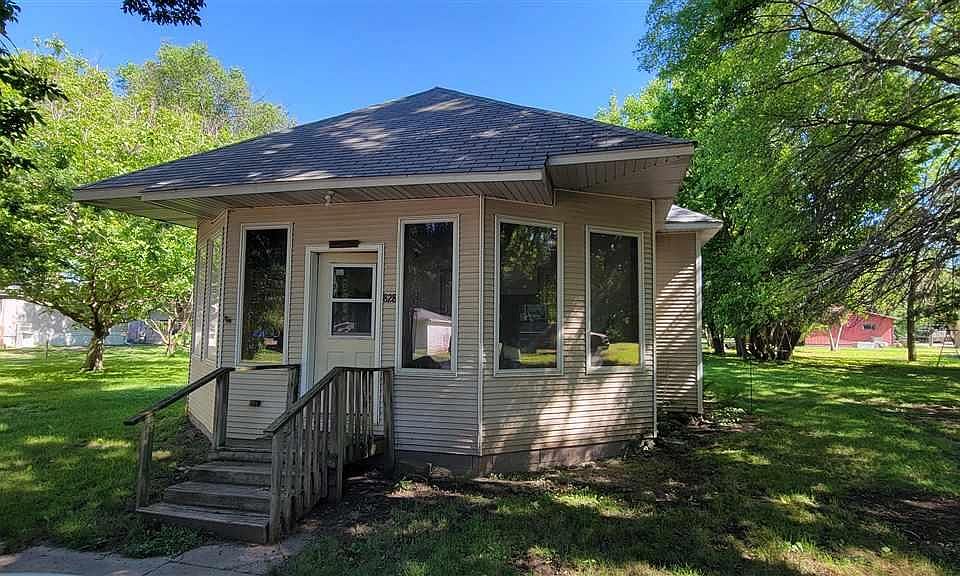 Spacious sunroom/front porch with vaulted ceilings (higher than 12ft!). Living room has a nice large picture window & recently refinished hardwood floors. Wide doorway leads to a large dining room- also with refinished hardwood floors. Large Kitchen with new vinyl flooring. Main floor bathroom & laundry room. Large detached & oversized 3 stall garage. Room measurements are estimated & should be verified by Buyer.