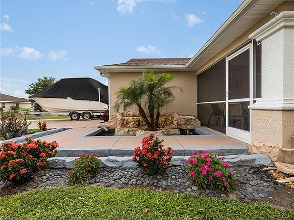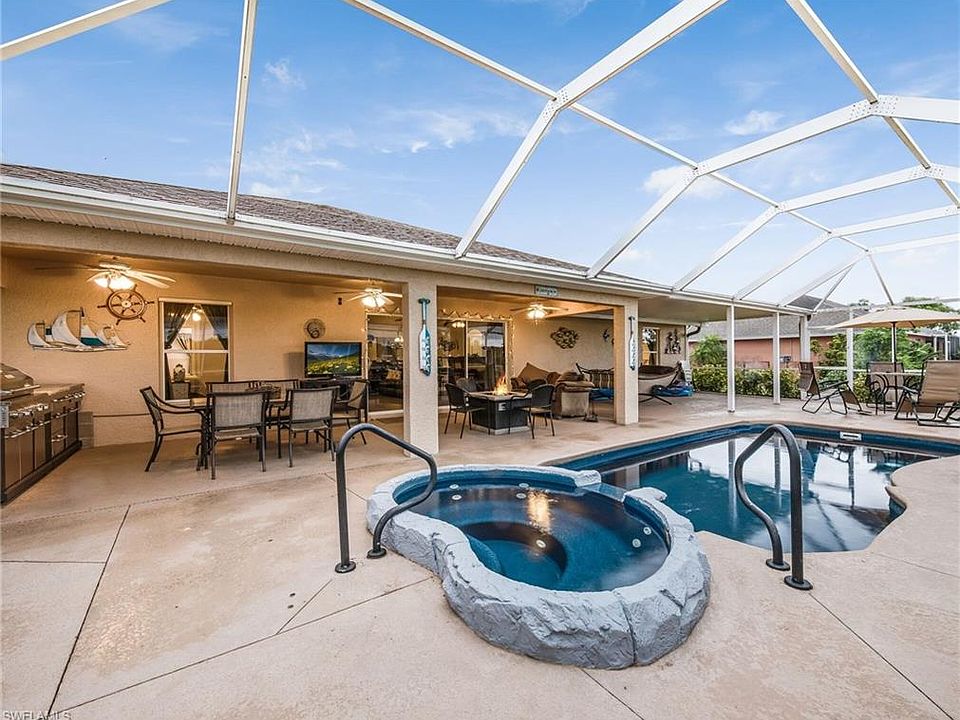 WELCOME HOME! With this curb appeal, you'll fall in love with this home immediately! Walk up to the front entry and appreciate the waterfall and water feature that adorns both sides of the sidewalk, complete with its own palm island. Walk through the screened in front lanai and step inside to the fully open floor plan, with volume ceiling. Open kitchen with stainless steel appliances, over-sized pantry, and breakfast counter. Separate dining area and huge Florida style great room. French doors on the Den/Study, that has hardwood floors. Split bedroom floor-plan with wood floors in each of the three bedrooms. Master suite includes dual closets and master bath with dual sinks and shower/tub combo. The HUGE Lanai has plenty of covered area to get some shade, copious amounts of sunbathing space, and a custom heated pool and a spillover spa (heater is nearly brand new). Huge outdoor kitchen, stainless steel, granite countertop, grill, cooktop, and sink. Enjoy this space all year 'round, it even has a patio fire pit! Home is complete with a high-end water system. Garage shows just as well as the rest of the home, with epoxy floors. Don't miss this, come to get your slice of paradise!!!