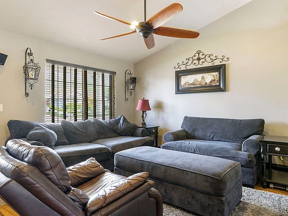 Charming home in amazing neighborhood. Awesome Mountain View's. 3 bedrooms on main floor and 1 large newer room in basement. Ceiling fans in every room. Large area for vegetable garden. Extra electrical outlets for holiday decorating. Night lights built in. Surround sound wired upstairs. New vinyl fencing. Close to two canyons. Fresh paint!