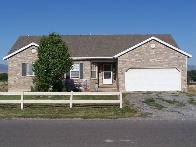2.5 acres, pressurized irrigation, house built in 2001-all for under $300,000! Acreage alone in Genola sells for $140,000. With this in mind you're paying $47 a sq ft for the home. Wood flooring, master bath, vaulted cielings, deck.