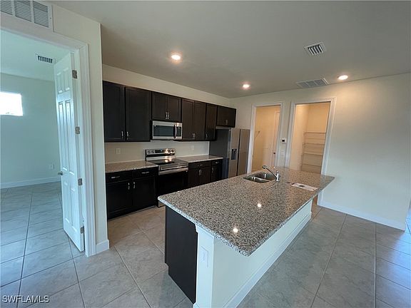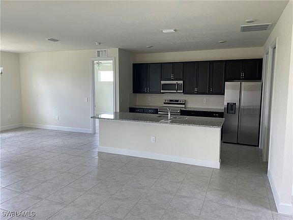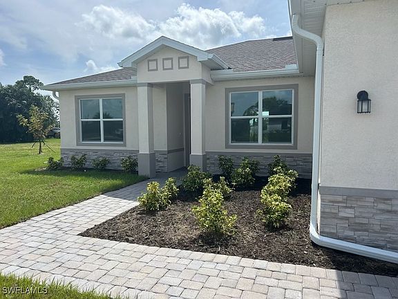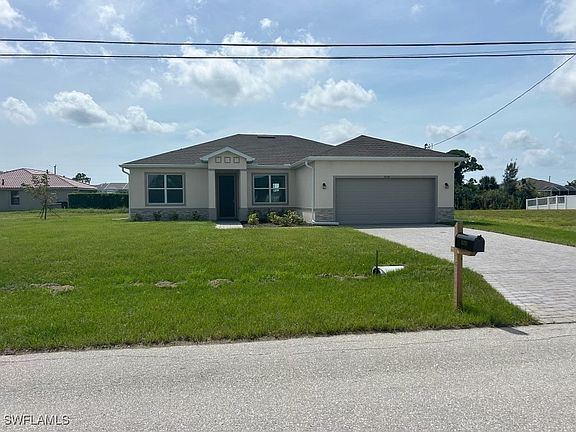 Beautiful, brand new waterfront construction with builder warranty in highly desired area of Southwest Cape Coral. 3 bedrooms + Den/Office, 2 bathrooms, 2 car garage. 1668 sq. ft. under air with 9'4" ceilings throughout. Tile in every room. Granite countertops with matching backsplash in the kitchen and both bathrooms. 8' doors throughout.