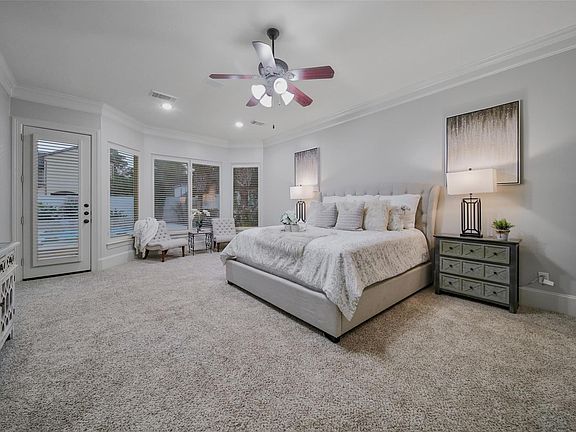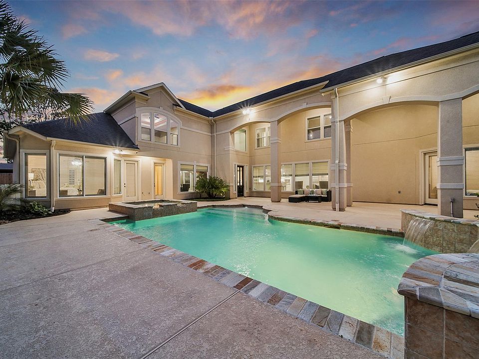 This gated, Mediterranean-style, stucco home is bright and open with a lush backyard oasis featuring heated pool, spa, waterfall and covered outdoor living space. The open design of the gourmet kitchen, with luxury appliances, breakfast and family room invites everyone to spend time together, with breathtaking vistas of the pool. The pool can be accessed from the master bedroom and also from the half bath. The second bedroom on the first floor, with full bath, is ideal for extended family. Large, extended 3-car garage and elegant paved driveway. The gated access for this 4-home private enclave has a substantial setback from Seagler Road ensuring seclusion in the city. Situated in the heart of Briargrove Park, a walking neighborhood with a local park, yet close to Beltway 8 and City Center offering a multitude of bars, restaurants and other social activities.