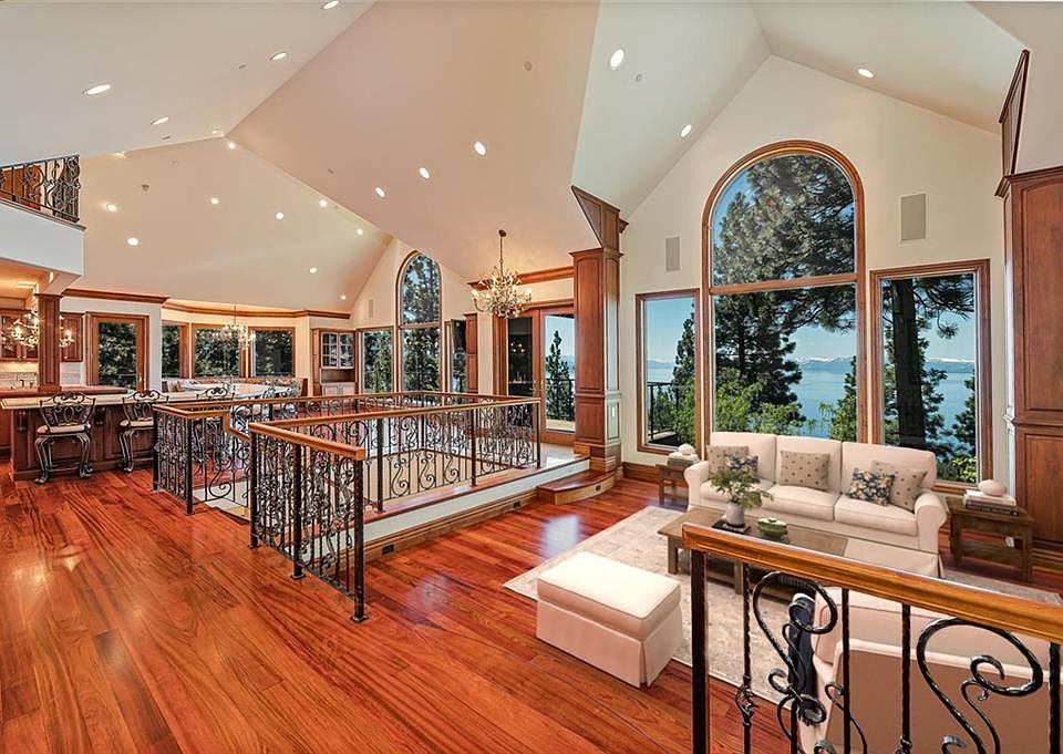 Crystal Vista is a masterpiece with multiple floors of living space: Brazilian cherry wood floors throughout, uninterrupted views of Lake Tahoe, an entertainer's kitchen, butler's pantry, enormous African mahogany butcher block island and French limestone counter tops. All five bedrooms are en-suite. The master bedroom boasts a hand-carved fireplace, cedar-lined closets and walk-through shower. An elevator adds convenience especially when stocking the 1,150 bottle wine cellar. Entertaining is seamless with the recreation, pool table and media room featuring a built-in home theater system and bar. Multi-level decks and stone patios provide several vantage points of Crystal Bay, Lake Tahoe and the surrounding mountains. Smart home technology features abound including computer-controlled lighting and a built-in home surveillance system. A babbling stream with pond creates a peaceful retreat. Escape to Crystal Vista for stress-free living with spectacular views from sunrise to sunset.