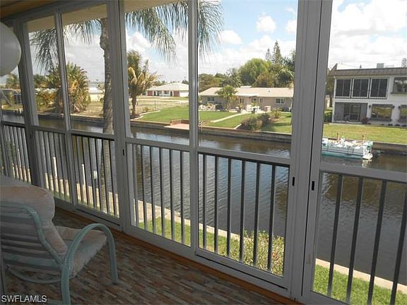 Don't miss this awesome 2 bedroom / 2 bath gulf access condo in popular SE Cape Coral. This great end unit boasts over 1,200 sq.ft. of living space with a huge lanai overlooking the canal and boat docks, and has glass sliders as well as screens to increase your year round living space! This condo also features a roomy master bedroom with sliders to the lanai and an inside washer/dryer. Boat docks are on a 1st come 1st served basis, and it's a short boat ride to the river with one bridge. Safety and security also come standard with this unit with accordion hurricane shutters on the lanai and windows! Windsor Manor also has a newly remodeled clubhouse, with kitchen overlooking the pool and intersecting canals! Super convenient to the yacht club waterfront restaurant, beach and boat ramp, as well as all of the downtown Cape Coral shopping and restaurants and pet friendly too!!